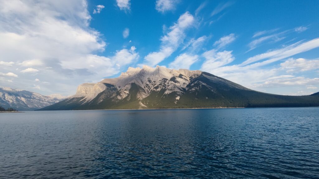 El lago Minnewanka (en siux: «Agua de los espíritus») es un lago glaciar situado en la zona oriental del Parque nacional Banff en la provincia de Alberta, Canadá, a unos cinco kilómetros (3,1 millas) al noreste del poblado de Banff. El lago está a 28 km (17 millas) de largo y 142 m (466 pies) de profundidad, por lo que es el lago más largo de los parques de montaña de las Montañas Rocosas canadienses (el resultado de una represa de energía en el extremo oeste).6 El lago es alimentado por el río Cascade, que fluye al este de las Montañas Cascade, y corre hacia el sur a través de Stewart Canyon medida que se vacía en el extremo occidental del lago. Numerosos arroyos que bajan desde el monte Inglismaldie, Girouard Monte y Peechee monte en el lado sur del lago también se alimentan del lago.